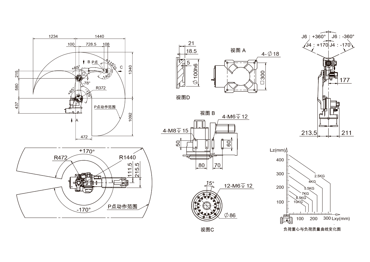 | ±170° | +85°~-125° | +85°~-78° | ±170° | +115-140° | ±360° | ||